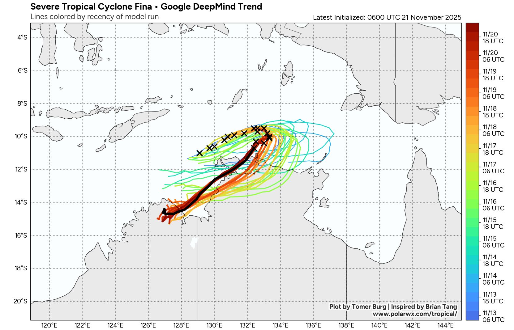 Fina Impacting Australia, 95B Heading Into the Indian Ocean: AI Models Discussion 11-21-2025