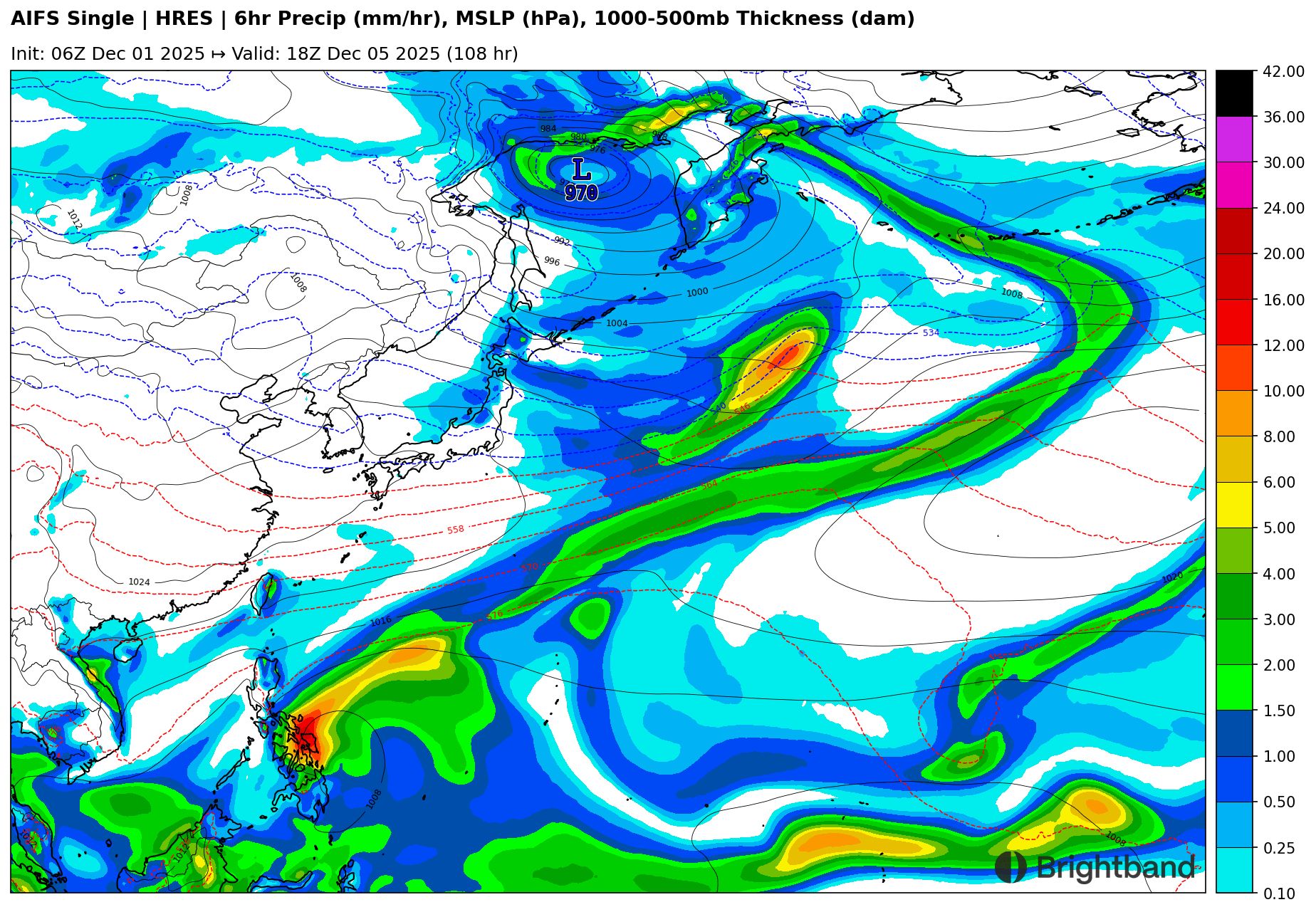 As mentioned above, however, even a weaker storm has the potential to produce heavy rain (Figure 5), as the TC brings in moisture from the deep tropics and interacts with the right entrance region of the Jet to the north. This will need to be watched closely in the Philippines for potential flooding issues.