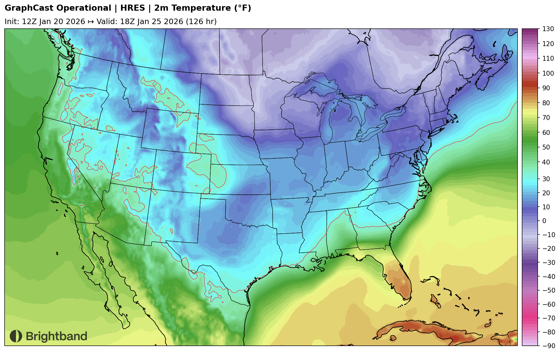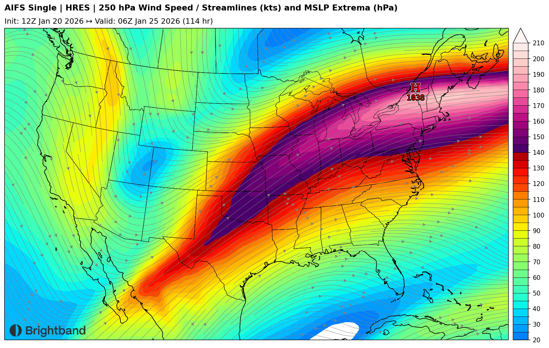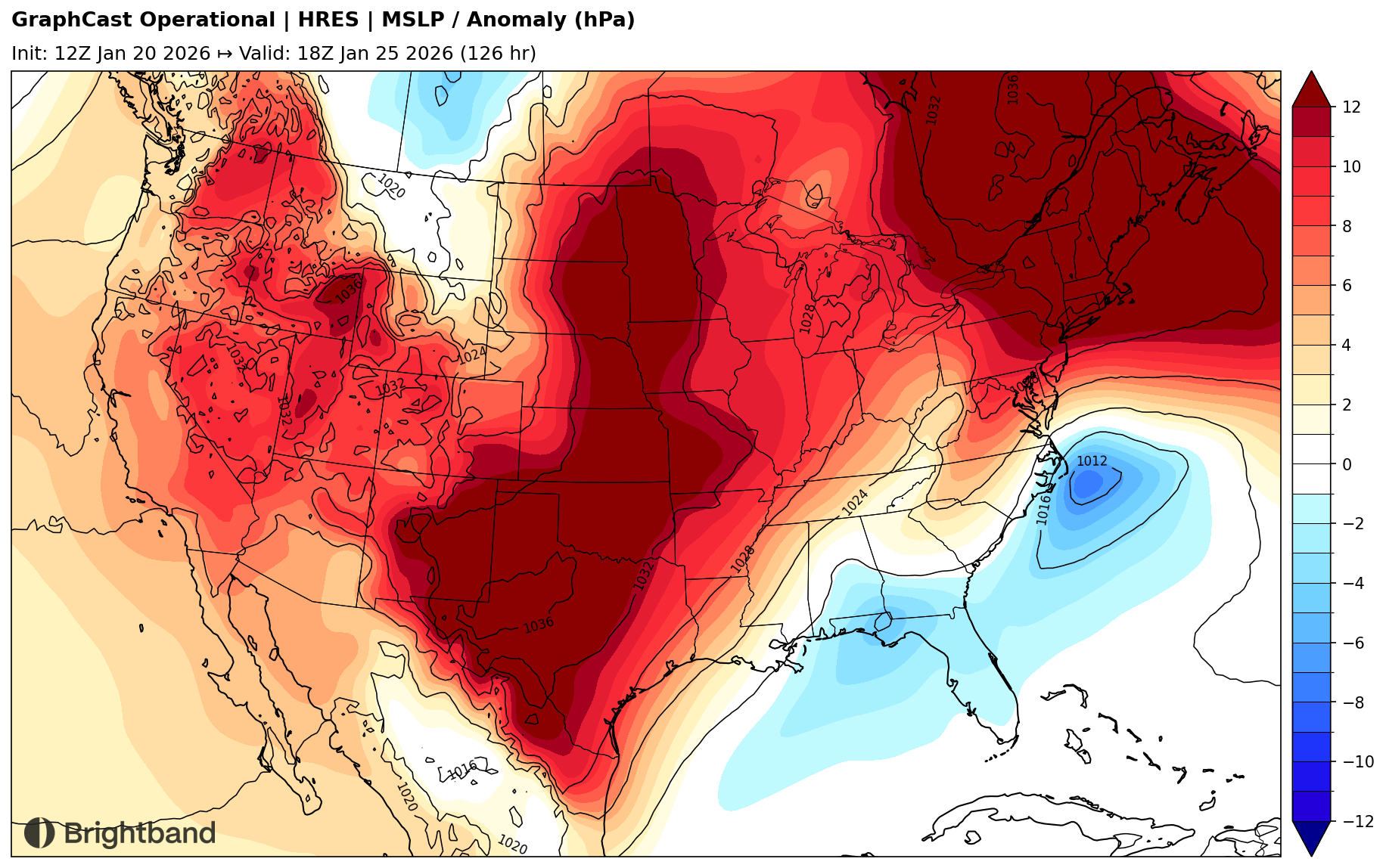 Other models have a stronger ridge and larger warm sector across the Southeast. For example, PanguWeather has a warm nose extending to the Appalachians, which would reduce snow totals but increase the risk of ice across the Carolinas and Virginia (Figure 6).